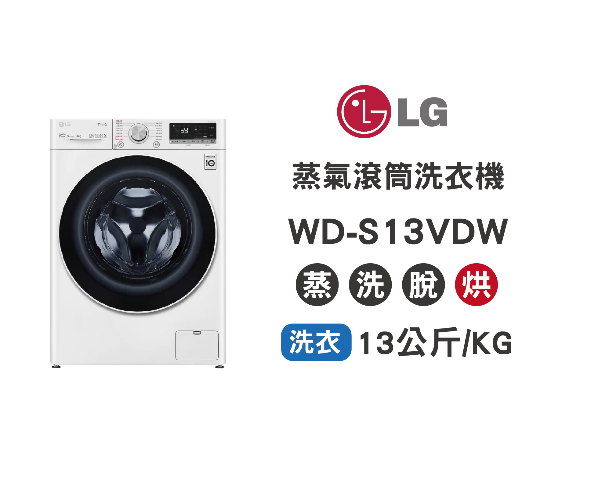1 => 'LG 滾筒洗衣機 WD-S13VDW 冰瓷白 13公斤蒸洗脫烘',