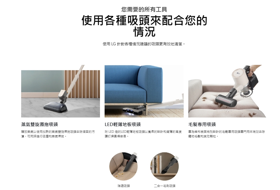 ● LED輕薄地板吸頭,深入清潔陰暗狹窄處